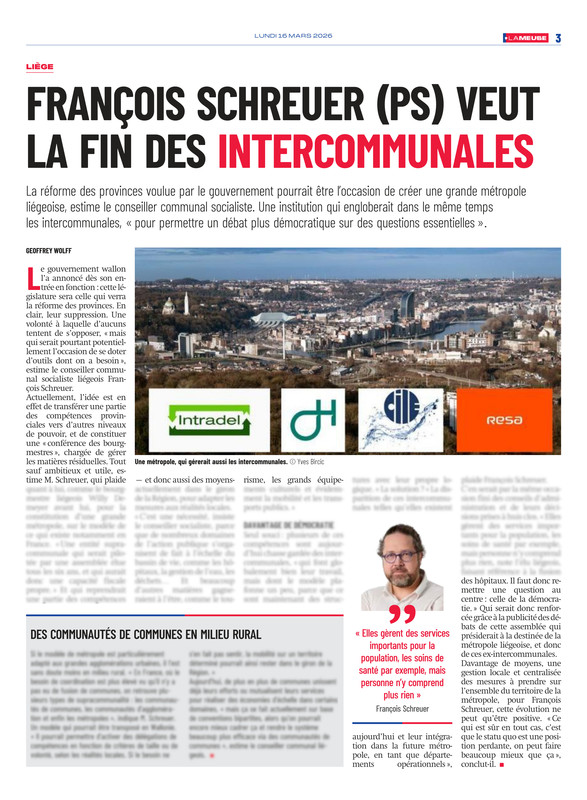 Le modèle annoncé par le ministre Desquenes dans sa note semble surtout technique et résiduel : suppression des conseils provinciaux, transfert des compétences des provinces vers d’autres niveaux de pouvoir (qui ne sont pas forcément demandeurs), quelques réunions par an des bourgmestres pour gérer ce qui reste. L’objectif est de « réduire la lasagne », mais c’est à peu près tout : on ne perçoit pas vraiment, dans cette note, une vision d’avenir, positive, ambitieuse, pour nos territoires. Là où la France, notamment, a fait de la supracommunalité un véritable moteur de développement et de cohésion de ses territoires, urbains comme ruraux, un modèle qui devrait nous inspirer.